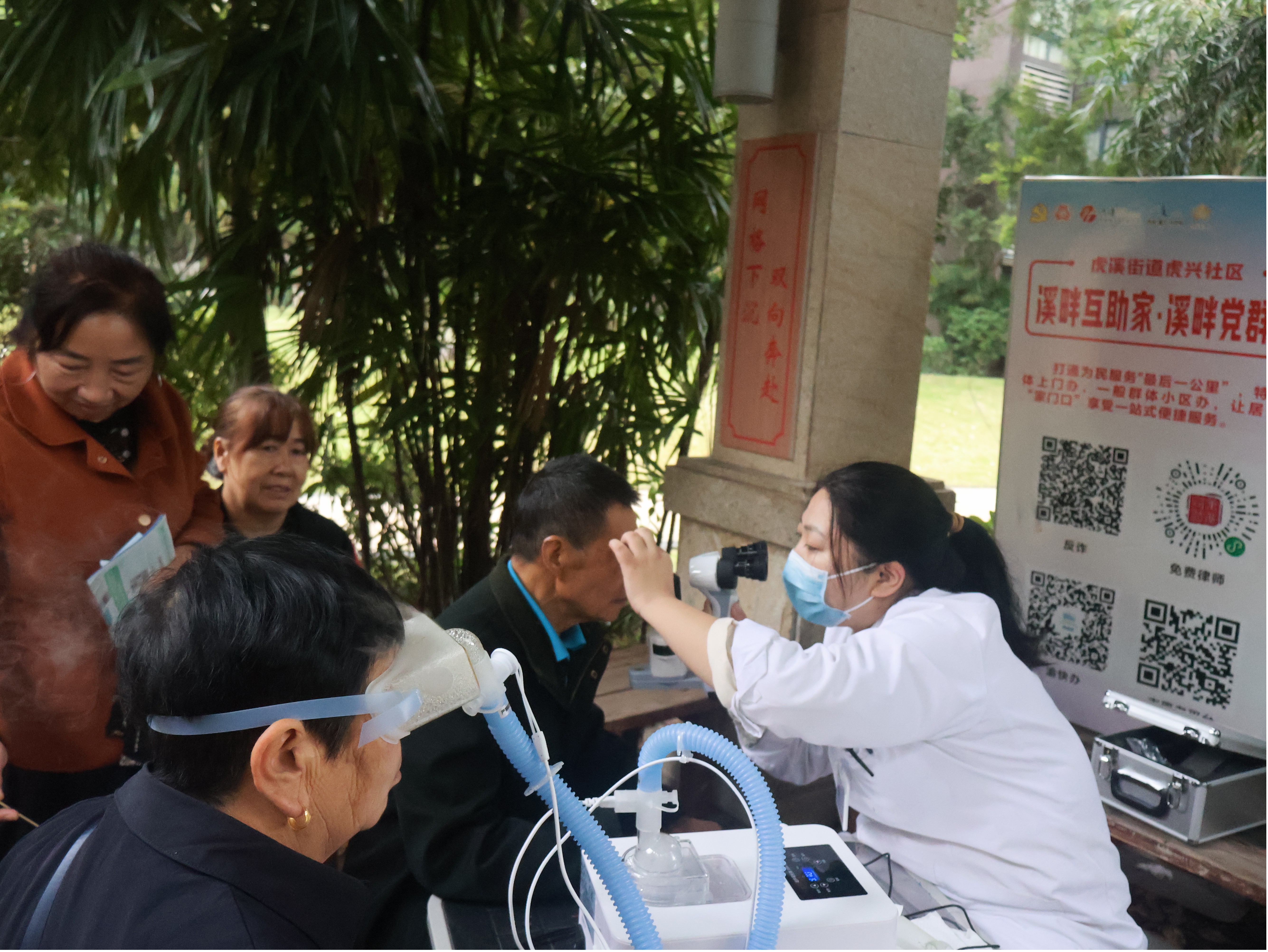 为了让老年居民享受到家门口式的健康服务,来自海吉亚医院的医疗志愿者正为居民提供免费量血压、测血糖、护眼检查及健康咨询等服务。“婆婆,你的血糖有点高,平时要注意合理饮食。”医疗志愿者向现场老年居民普及健康生活小知识,叮嘱居民在生活中注意合理膳食、有规律的生活和科学锻炼身体,不断提升老年居民健康意识和健康素养水平。
