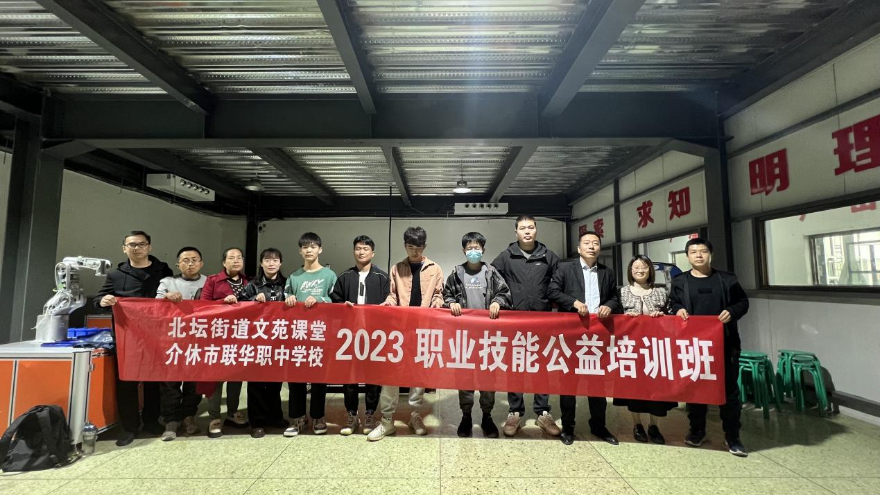 配备专业师资,丰富课程内容。街道目前已成立文苑街社区职业技能培训协会,把职业教育骨干力量纳入协会,现有讲师团成员8 名,仍在发展壮大中。2023年度计算机培训50人并发放结业证书,厨师培训150人,工业机器人培训22人,电工培训100人。其中厨师培训班、电工培训班结束后可免费参加初级职业资格证书的考取,并推荐相关就业岗位,工业机器人培训班有7人考核优秀,已经到就业班继续深造学习,学习后可到相关岗位就业。
