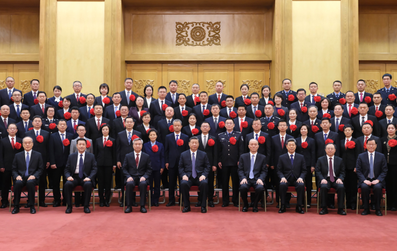 11月6日,党和国家领导人习近平、蔡奇、李希等在北京人民大会堂会见全国“枫桥式工作法”入选单位代表。新华社记者 李学仁 摄
