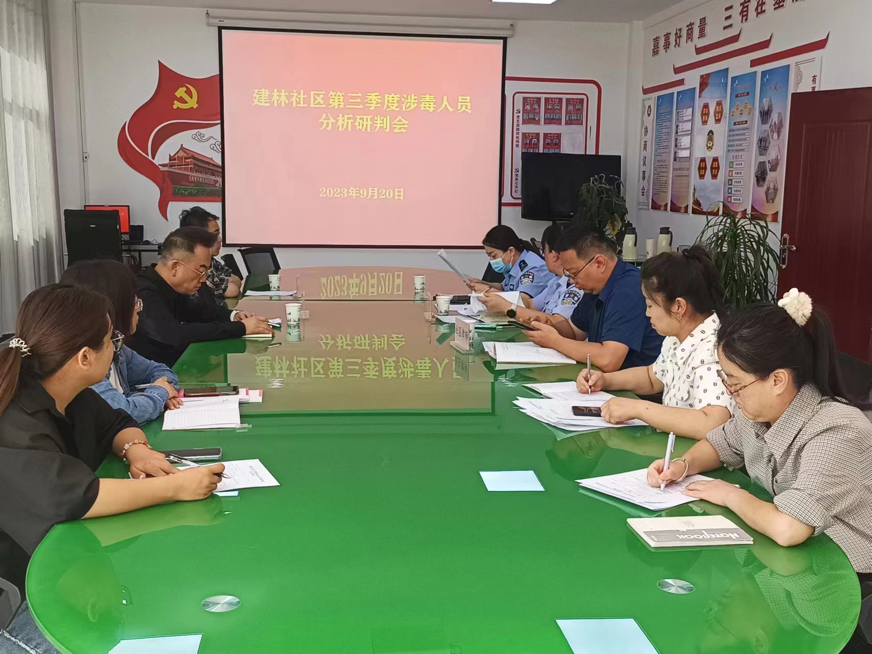社区每月召开社区社会治安形势暨矛盾纠纷分析研判会,将常态化走户走访摸排到的矛盾纠纷、辖区治安情况、特殊人群等工作进行分析研究,为辖区内政治重点人、肇事肇祸精神障碍患者、吸毒、“四失两特殊”等重点人群建立风险管控档案、服务管理和预警机制,加强对重点人群的心理疏导、人文关怀和跟踪帮扶,把苗头性、倾向性隐患疏导在早、化解在小,努力把各类隐患、事件解决在前端。多措并举强化平安建设工作,筑牢稳定防线。