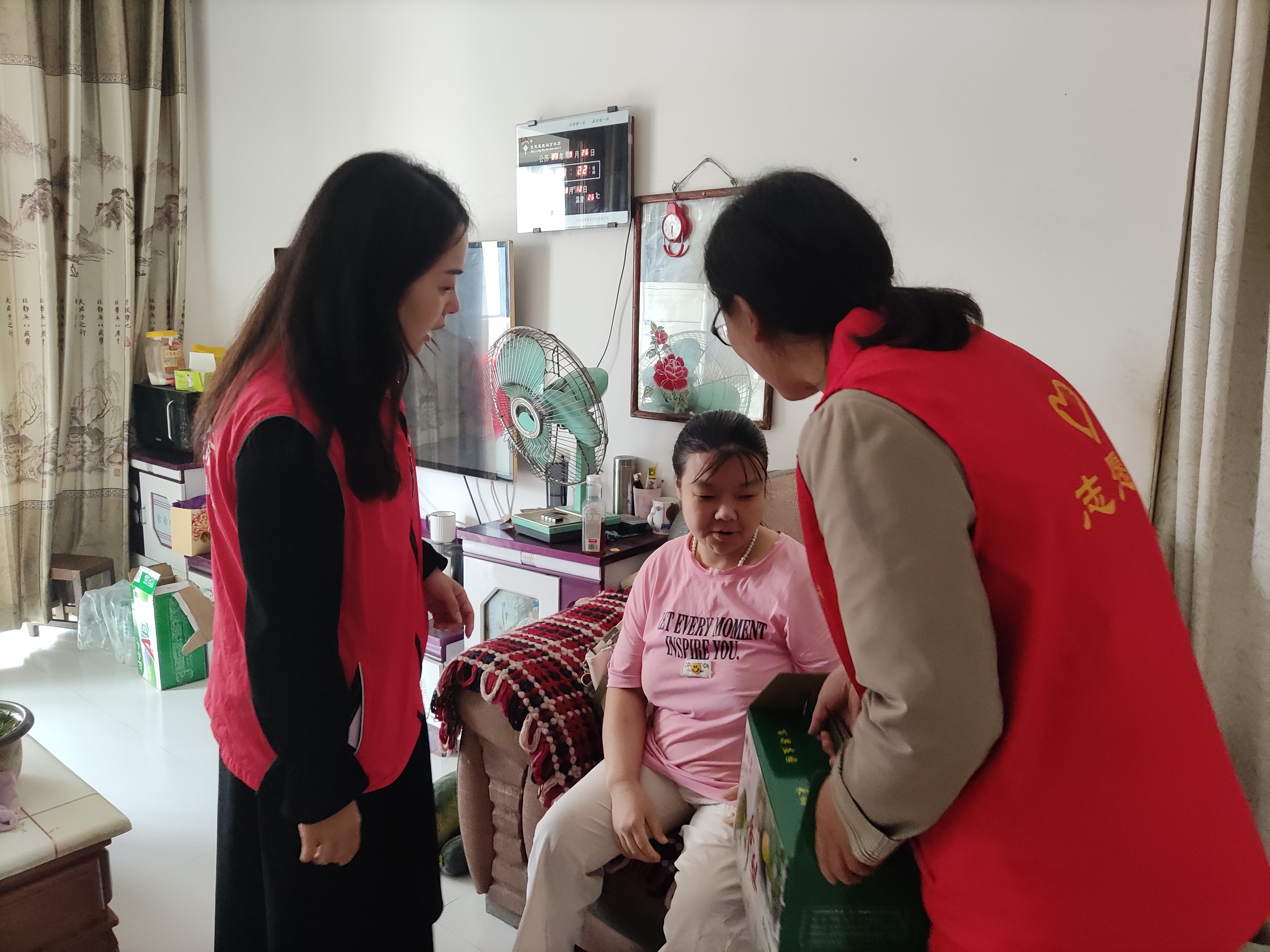 送温暖 献爱心 祥和街社区聚焦“一老一小”重点特殊群体,发挥“爱老敬老志愿服务队”“伴爱成长护卫队”等志愿服务队伍作用,常态化开展走访慰问活动,给特殊群体送去关心关爱。发动志愿者配合网格员全面摸排辖区内独居老人、残障人士和困难家庭等特殊群体底数,建立人员名录,实施结对志愿帮扶,开展“上门送温暖”等志愿服务项目,为特殊群体提供定期电话访问、上门巡视、需求收集、精神慰藉、协助解决问题等各类服务。积极链接社会资源,协同乐达社工组织,依托公益理发志愿服务队、“爱心社区医生”等,定期为辖区内孤寡老人、留守儿童、伤残退伍军人、残疾群众以及长期卧病在床的困难群体进行义务理发、爱心义诊等志愿服务。目前已累计服务500多人次,有效增强特殊人群的幸福感和获得感。