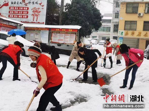 通山县党员志愿者带头下沉社区,开展热火朝天的“扫雪除冰保畅通”活动,对车辆通行较多的主干道和其他积雪较厚、安全隐患较大的区域及时清理,保障群众的出行安全。