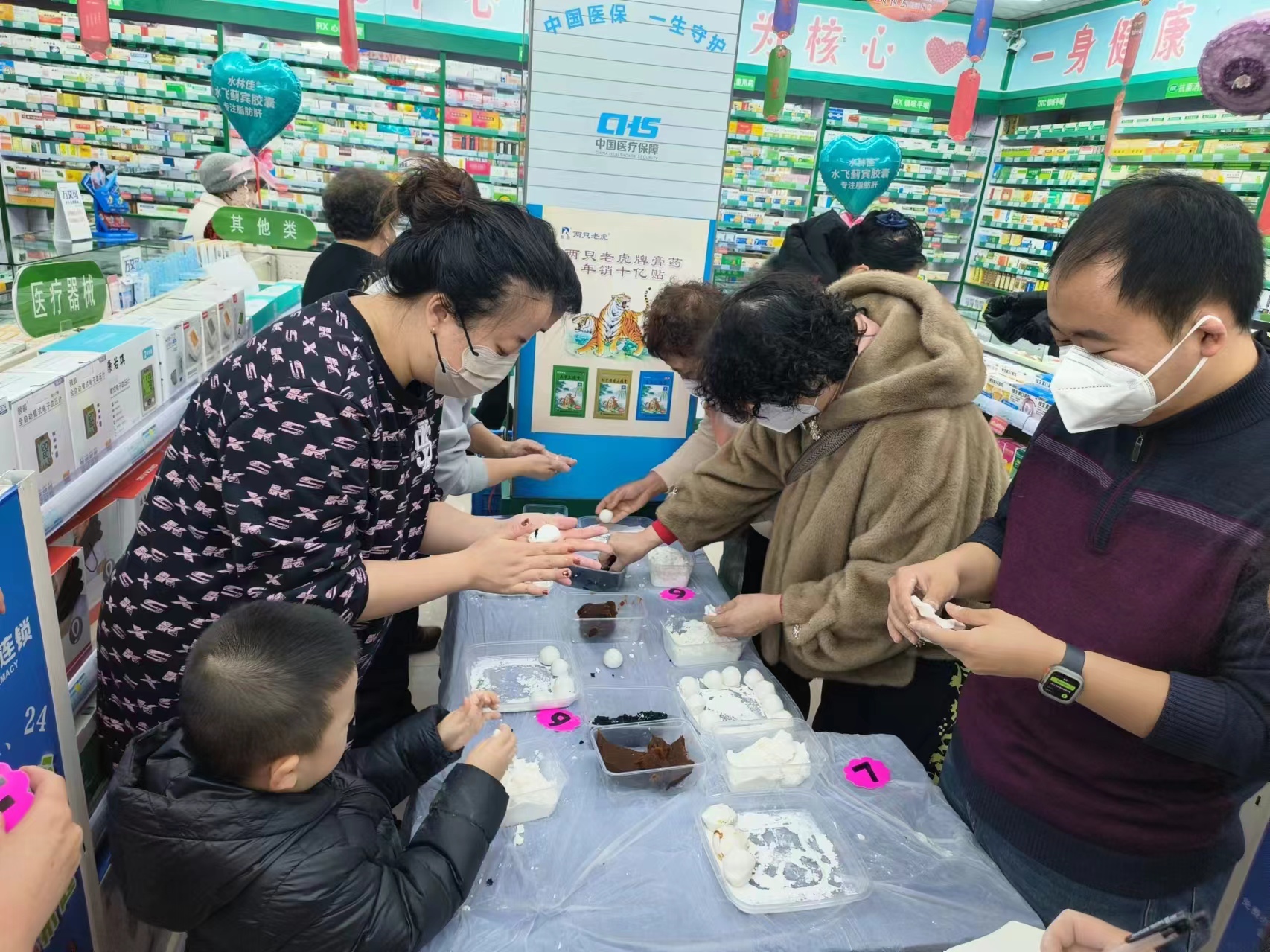 在包元宵环节,药店的工作人员事先为居民们准备了新鲜的糯米粉和丰富的馅料。居民们纷纷动手尝试,有的手法熟练,有的则是第一次尝试。在大家的共同努力下,一个个圆滚滚、饱满的元宵逐渐成型。现场欢声笑语不断,大家边包元宵边聊天,分享着过节的喜悦和家常。