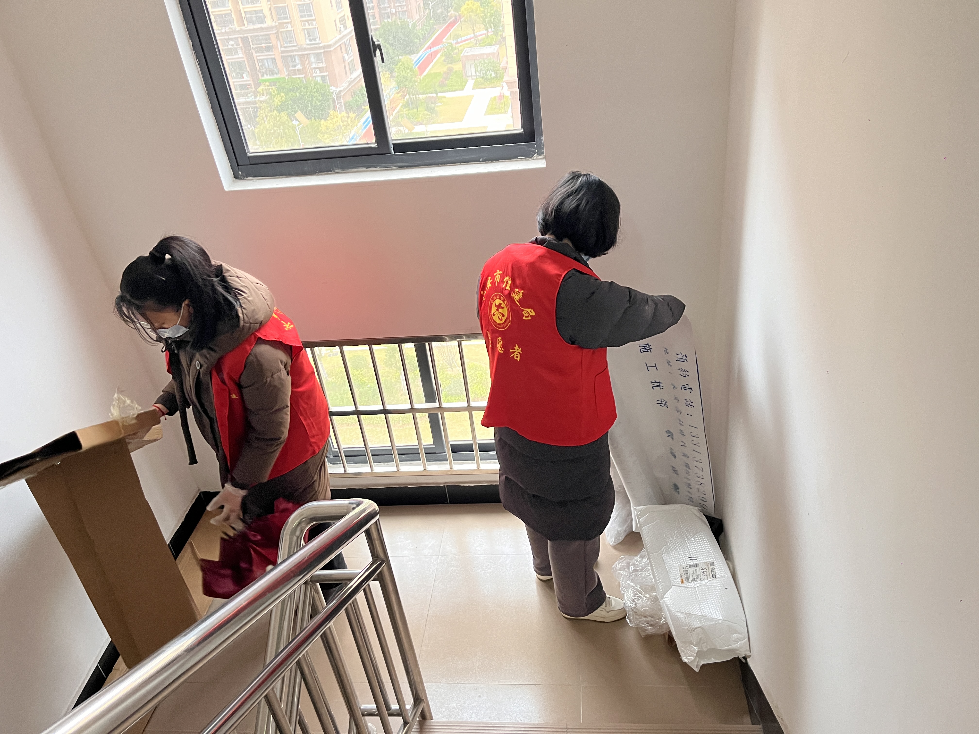 创城志愿者一行来到需整改的楼幢通道,经过合理分工,齐心协力开展清理整治杂物工作,志愿者们先是将楼道杂物统一收集起来,而后志愿者合力将装有杂物的泡沫箱、编织袋等搬运至楼下,并由专人清运,还原了干净整洁、畅通安全的楼道公共区域。