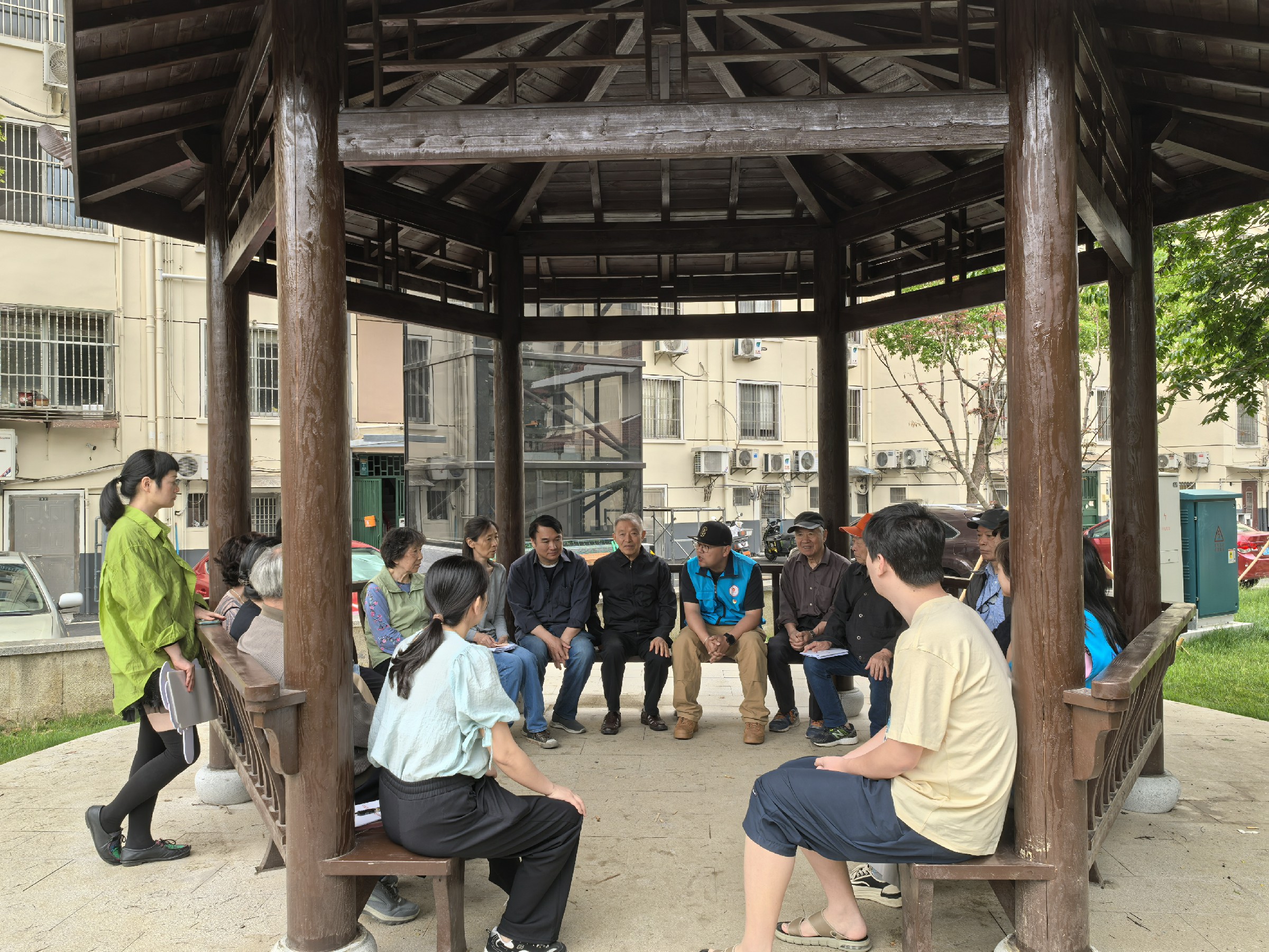 除此处之外,小区的其他三个文化廊亭也已经原地翻新,社区因地制宜打造“沉浸式”社区治理议事空间,将“家门口小板凳”议事会升级成“家门口亭廊”议事会,实现改造“更新”,品质“提升”,幸福“升级”。
