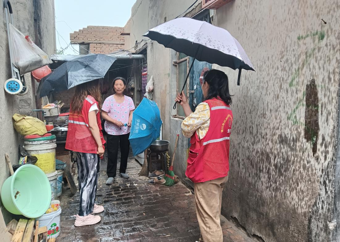 雨天来敲门 安全有“屏”障 每到极端天气社区工作人员就会对辖区自建房,逐一走访摸排,对问题及时登记上报,确保隐患排查无遗漏。同时挨家挨户叮嘱居民注意人身安全,宣传防汛减灾知识,提高群众的安全避灾避难意识,如发生异常现象,及时向社区上报。以严谨、务实的工作态度,坚守一线,守护居民。