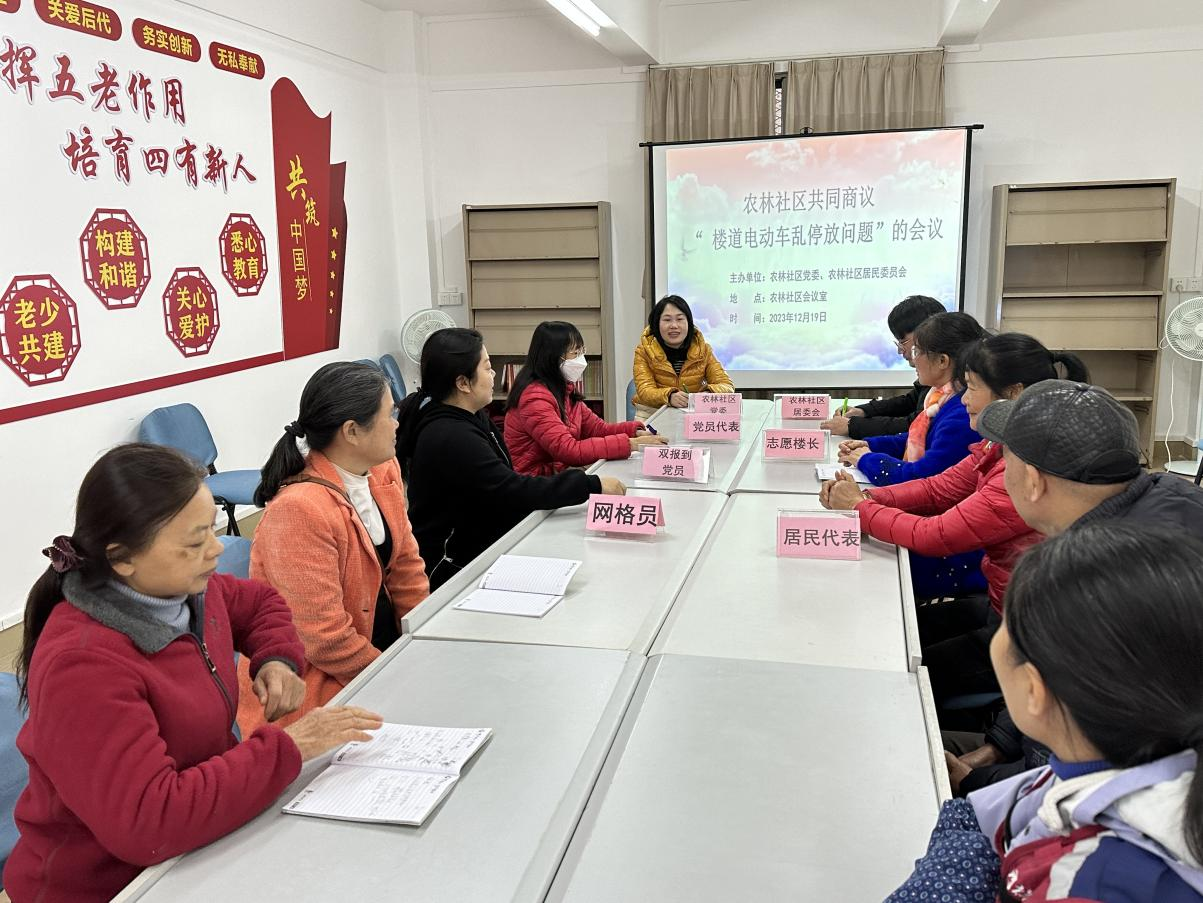 “建议科学选址,划定小区电动车停放充电区”“社区要加强宣传引导,网格员要多走访排查”“邻里之间也要相互监督提醒”……在农林社区,近段时间,社区先后举办两场党群议事会,围绕加装电动车充电设施、解决飞线充电、楼道乱停等问题展开商议,听居民心声、听住户诉求,集思广益找寻各方意见的最大公约数。