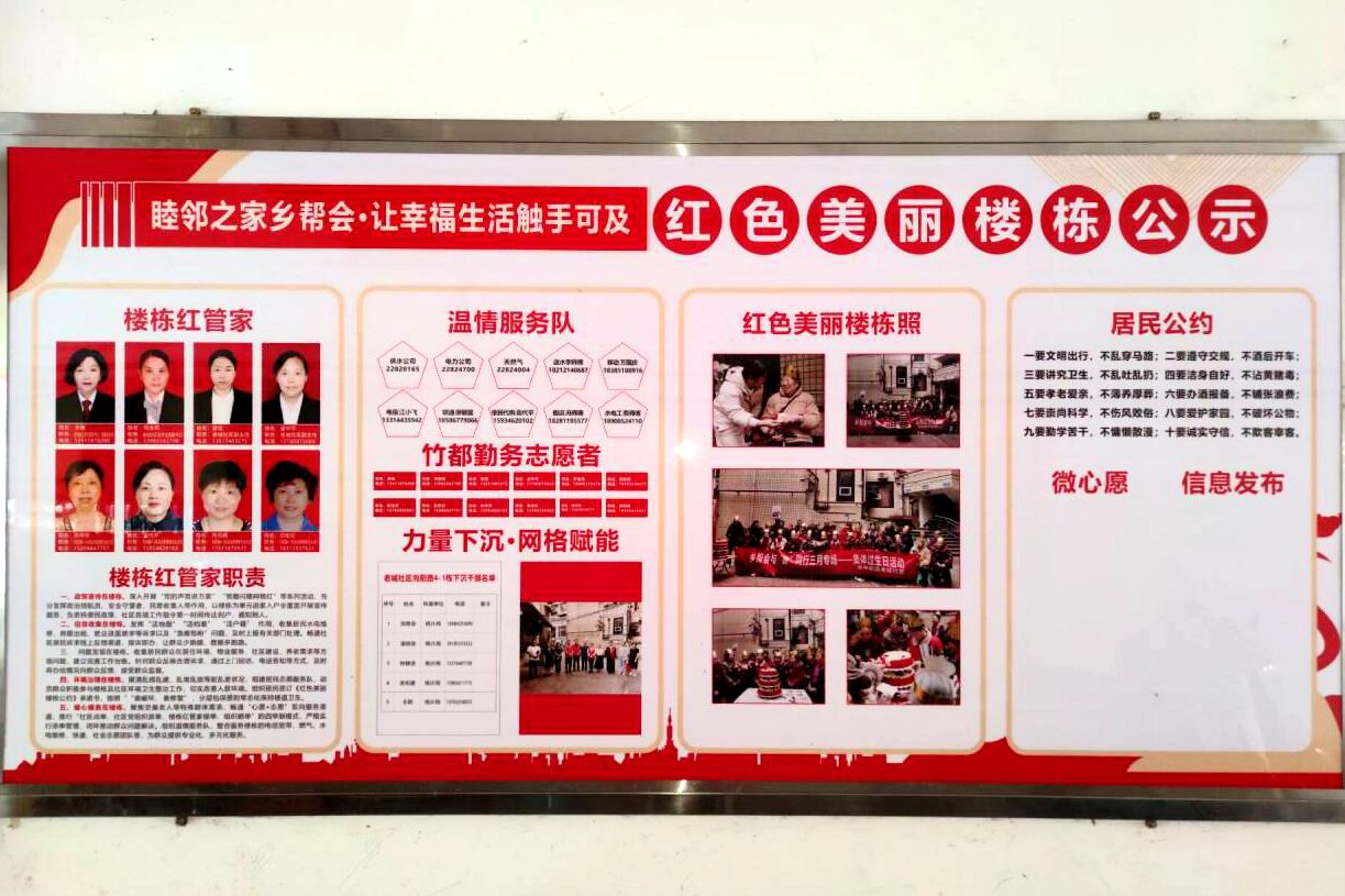 打造队伍,壮大居民自治“主力军”。通过创建“美丽红色楼栋”,建立小区“楼栋红管家”“温情服务队”等志愿服务队伍4支30余人,充实小区自治力量,常态开展志愿服务活动,加强燃气安全、电信诈骗等知识宣传,有效解决小区水电维修、环境清扫、家庭保洁、安全生产等问题。同时深入小区收集居民群众诉求,解决“微心愿”20余个,切实提升居民群众归宿感和幸福感。