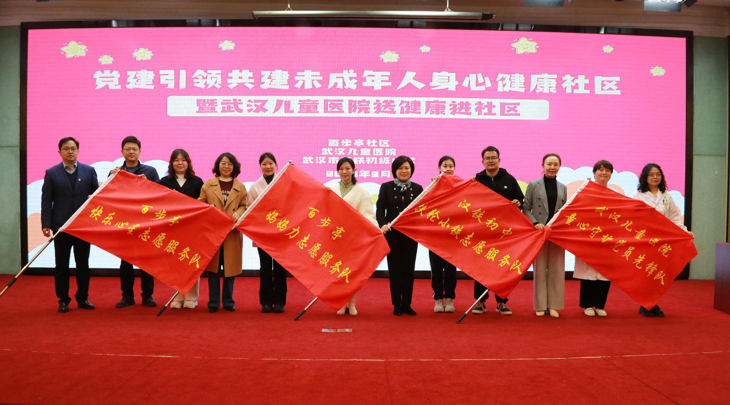 现场还为汉铁初中扶轮小铁志愿服务队、百步亭社区妈妈力志愿服务队、武汉儿童医院童心守护党员先锋队、百步亭快乐心星志愿服务队4支志愿服务队授旗。