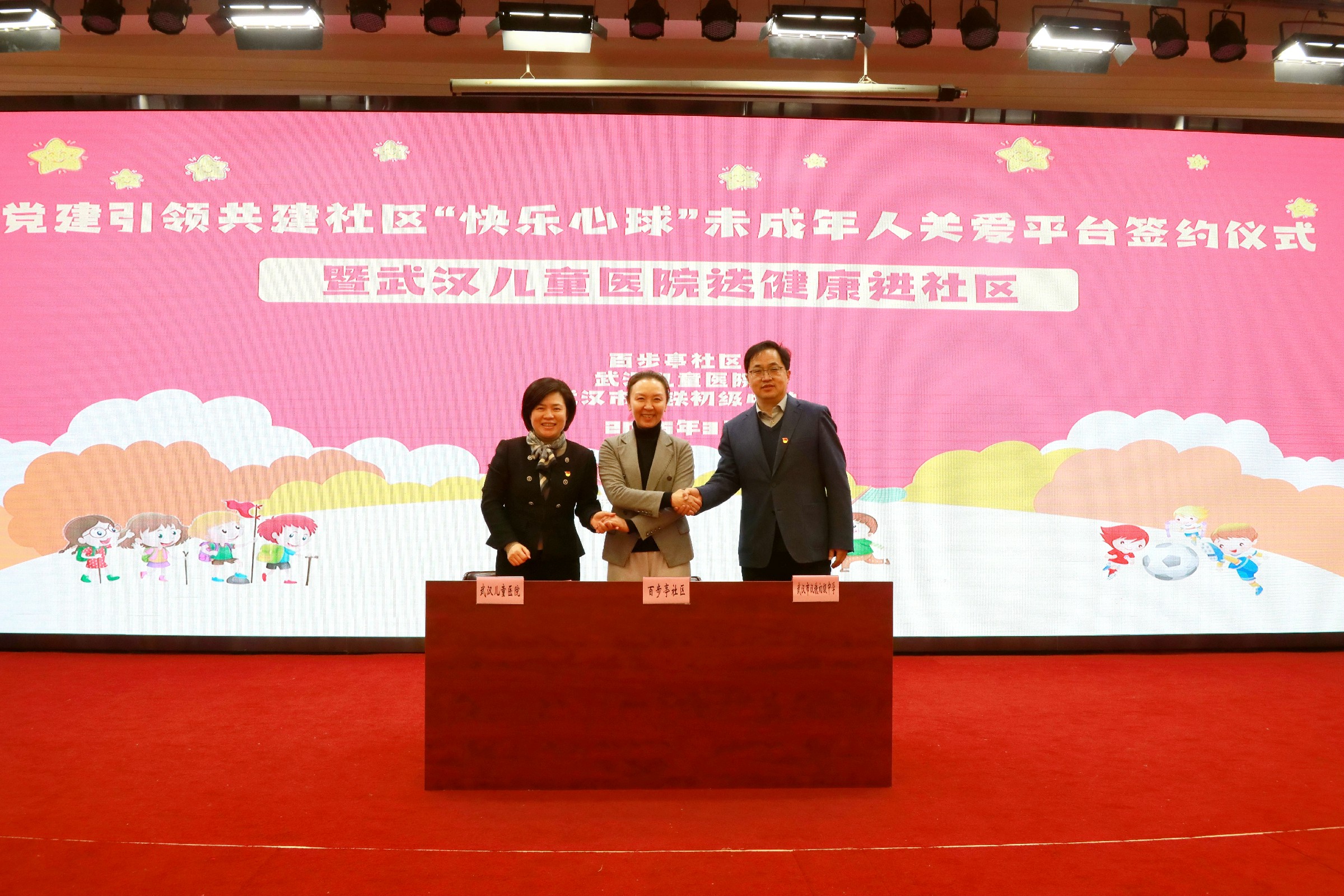 为加强经验交流、资源共享,构建“家校社医”协同育人机制,保障未成年人身心健康,3月11日,湖北省武汉市江岸区百步亭社区携手武汉儿童医院、武汉市汉铁初级中学,开展“党建引领共建社区‘快乐心球’未成年人关爱平台签约仪式”,共同搭建“社区统筹+医疗支持+学校教育+家庭参与”“四位一体”的关爱模式。