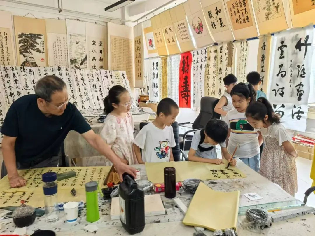2025年春节前夕,“丰收书画苑志愿服务队”的十几名队员齐聚社区综合文化活动中心,挥毫泼墨书写春联与“福”字,赠予社区居民,为生活增添年味儿。这已经是志愿服务队的“年度活动”之一了。他们都是爱好书法、热心社区事务的退休老年居民。每年7、8月,“丰收书画苑志愿服务队”的成员又变成社区“青少年暑期成长营”的书法绘画课老师,带领孩子们学习毛笔字和国画技艺。
