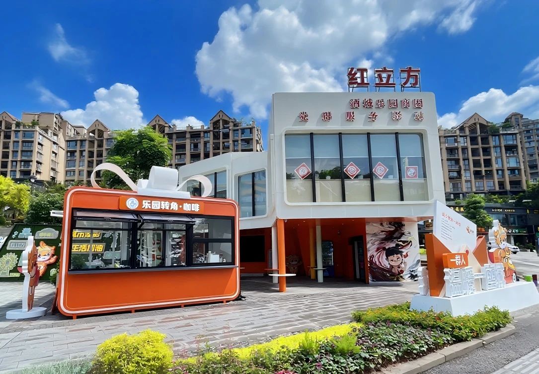 四川省泸州市“红立方”酒城乐园商圈党群服务驿站外观。